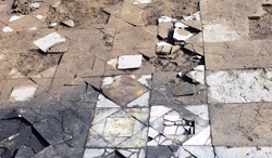 La voie de Narbonnaise, édifiée par Agrippa autour des années 10 av. J.-C., limite cette opération à l’ouest. Elle est pavée de larges dalles de granite et longée par un portique monumental ouvrant sur des espaces à destination économique et artisanale se développant sur trois étages découverts effondrés en place. En fond de parcelle, La maison de Thalie et Pan (secteur 4) est organisée autour de deux péristyles. Ce complexe, qui se développait en bordure du Rhône sur une superficie de près de 7000 m2, correspond sans doute à une schola qui accueillait probablement une école philosophique et/ou rhétorique déjà connue à Vienne par les inscriptions, mais jamais localisée. une trentaine de pièces. Elle a été reconnue dans son intégralité et nous livre une décoration soignée, comme en témoigne la découverte d’une vingtaine de mosaïques et de sols en marbres. Le pavement d’un cubiculum (bureau) de 16 m² constitue sans doute le plus bel exemple puisqu’il est doté d’une mosaïque dont le médaillon central représente l’enlèvement de Thalie, la muse de la comédie, par Pan, une divinité de la suite bachique.