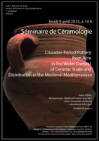 A l'occasion du séminaire de céramologie du mois d'avril, E. Stern, associée au projet POMEDOR, nous présentera ses recherches sur les céramiques d'Acre de la période des croisades dans le contexte plus large du commerce et de la distribution des céramiques en Méditerranée médiévale.