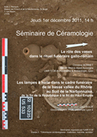 Les lampes à huile dans le cadre funéraire de la basse vallée du Rhône au Sud de la Narbonnaise, de la fin de la République à la fin du Haut Empire par Arnaud Galliegue, doctorant.